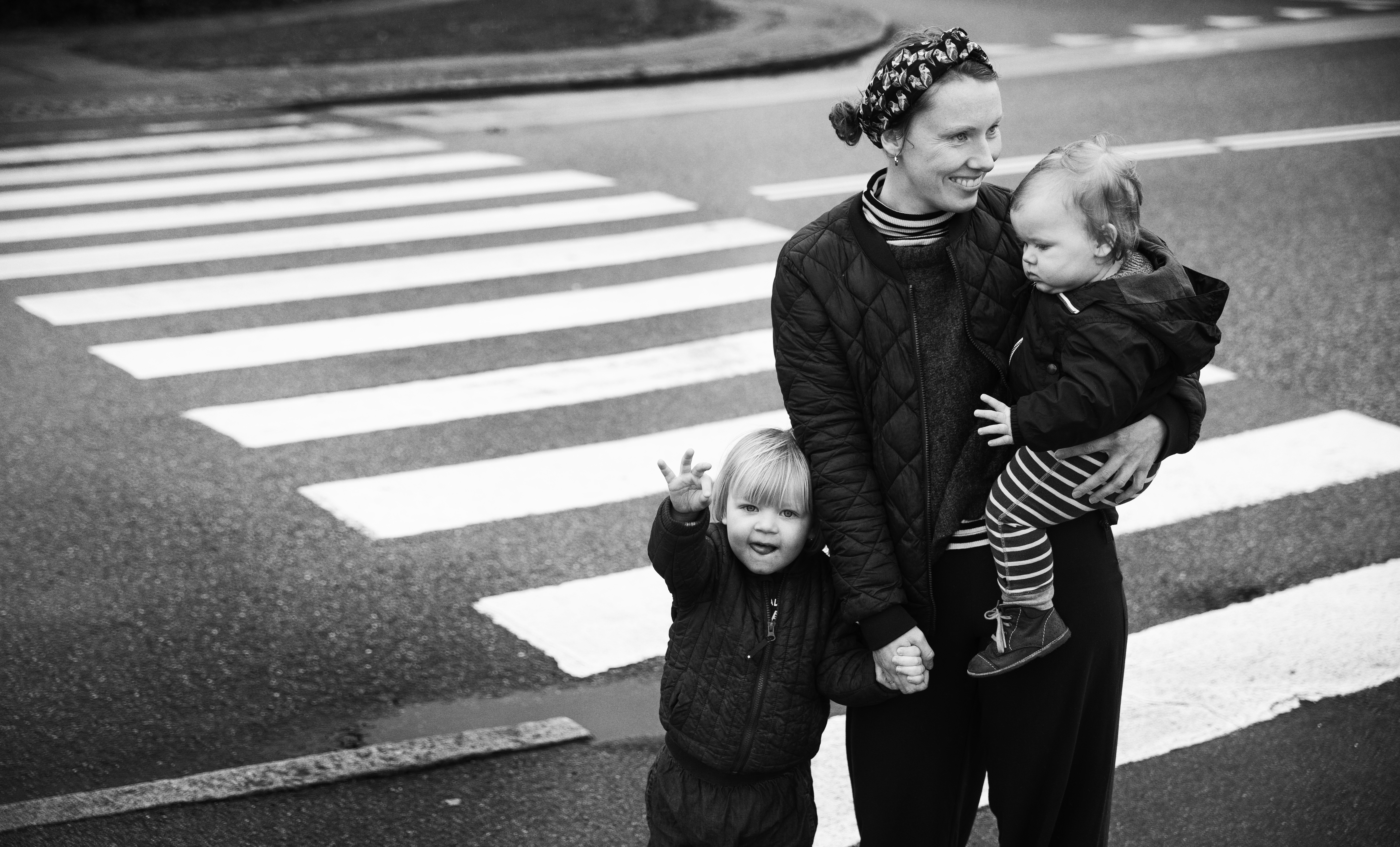 “Jeg kan tit se katastrofescenarier for mig. Det tror jeg, alle forældre kender til; mine er bare virkelig livagtige. Men vi har valgt meget aktivt, at vi ikke vil lade os styre af angsten, vi skal kunne se den anden vej, når vi er på en legeplads. Og så har jeg jo lært, at det ikke gør noget, at de græder, når de slår sig. Det er kun, når børn ikke græder efter en ulykke, at der er grund til at blive bange.”